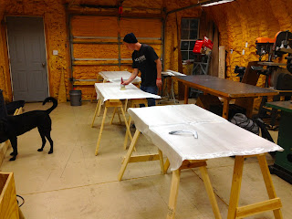 I started by getting some extra pieces of 3/8 and 3/4 Meranti I had leftover, and I glassed both sides with some 6 ounce cloth. Doing this on workbenches is very easy and fast.